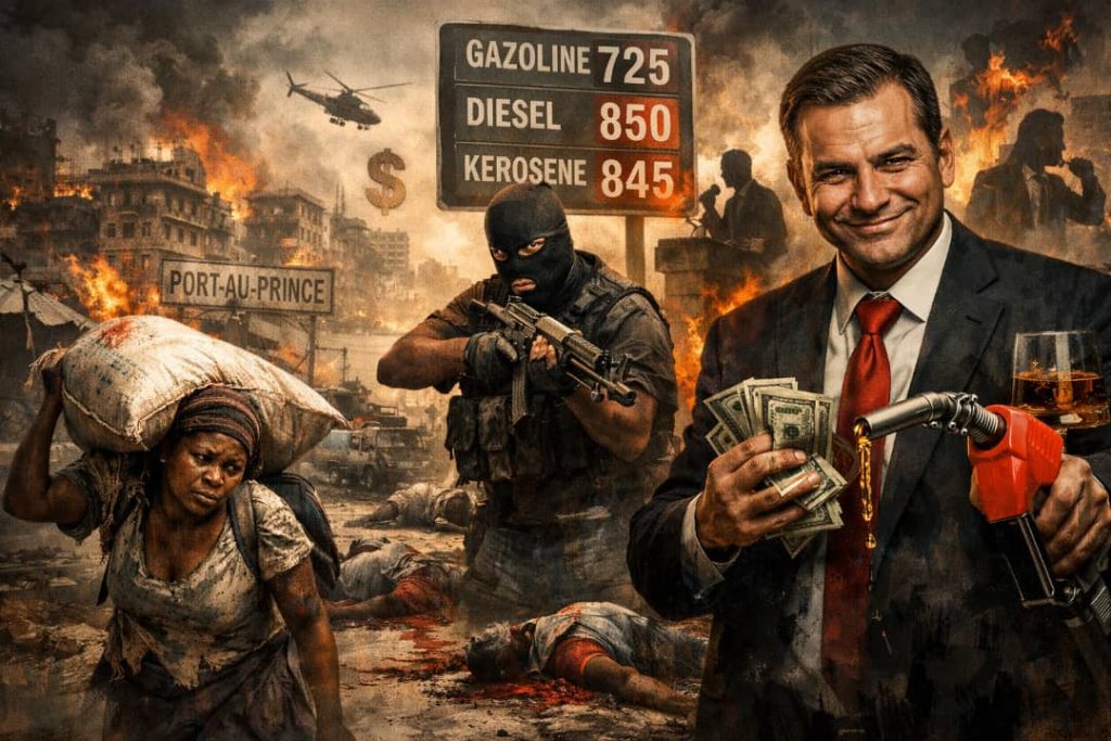 Quand le prix du pétrole mondial était bas et que la gourde, soutenue par les transferts de la diaspora, aurait pu permettre une véritable révision à la baisse des prix à la pompe, le gouvernement s’est contenté de regarder le ciel. Aujourd’hui, alors que l’économie est paralysée, que les routes sont séquencées par les gangs et que les marchés se vident, le même gouvernement trouve comme seule solution de “réajuster” le prix de la gazoline, du diesel et du kérosène à la hausse. Le gallon de gazoline passe à 725 gourdes, le diesel à 850, le kérosène à 845. C’est comme si, face à un patient en état de choc, le médecin prenait un marteau pour lui frapper la tête. Aujourd’hui, il étrangle le peuple avec des flammes invisibles, transformant chaque goutte de carburant en larme brûlante. Ce n’est pas de la cécité intellectuelle ; c’est de la cécité volontaire, une cécité choisie, une cécité qui s’habille du costume du “nécessaire” et du “technique”. On ne parle pas de réforme, ni de sécurité, ni de production nationale ; on parle de chiffres, de pourcentages, de “marché” comme si le marché était un être vivant qu’il faut apaiser par des sacrifices humains.